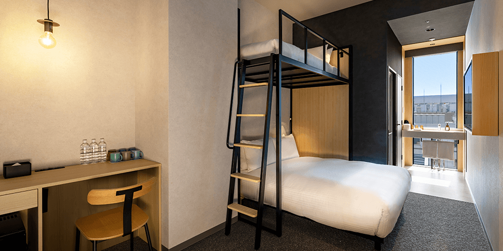 넓은 160cm 폭의 침대에서 느긋하게 편안한 책상이있는 객실입니다. 기능이 뛰어나 패밀리나 그룹의 이용도 쾌적합니다.
